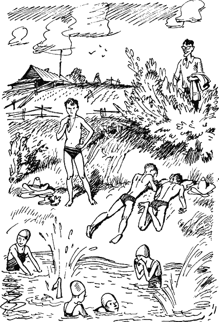 Подойдя к окошку, они увидели худощавого, длинноносого, пожилого дядю в очках. Он сидел посреди тесного дощатого сарайчика, наклонившись над столиком, и писал при свете керосиновой лампы. Мальчики остановились в нерешительности, с интересом начали наблюдать А дядя в окошке все писал и писал, не отрываясь. Его авторучка быстро бегала по бумаге Мальчики видели, что слова, как бусы, нанизывались в строчки Дописав до конца страницу, дядя взял другой лист, опять наклонился